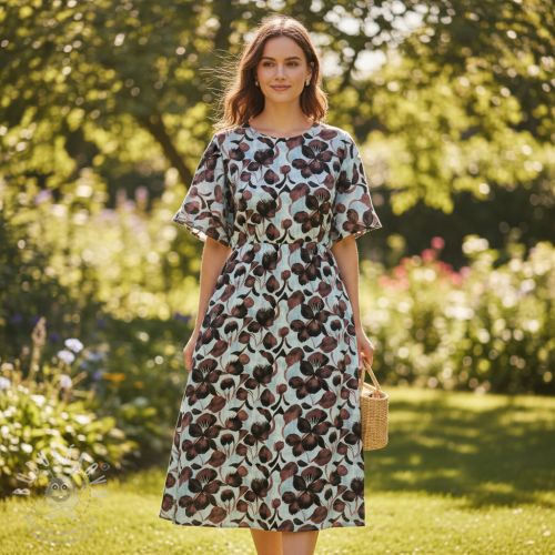 Viskóza se lnem Lotus design A digital print