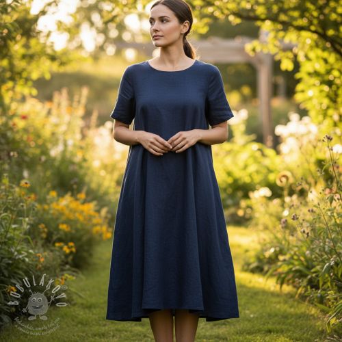 Viskóza se lnem PREMIUM navy blue