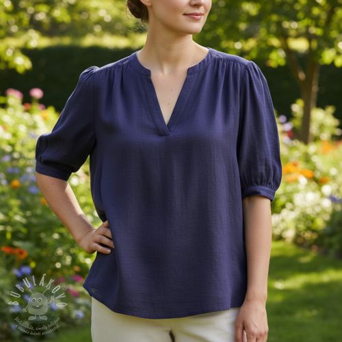 Viskóza se lnem WASHED navy